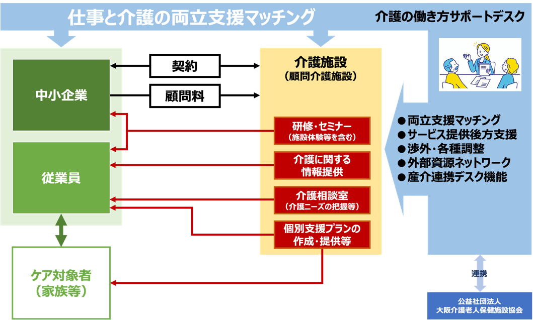 この度、「仕事と介護の両立支援マッチング事業」を開始しました。本事業は、地域の中小企業と介護施設を対象に、仕事と介護の両立を支援するための包括的なサポートを提供します。